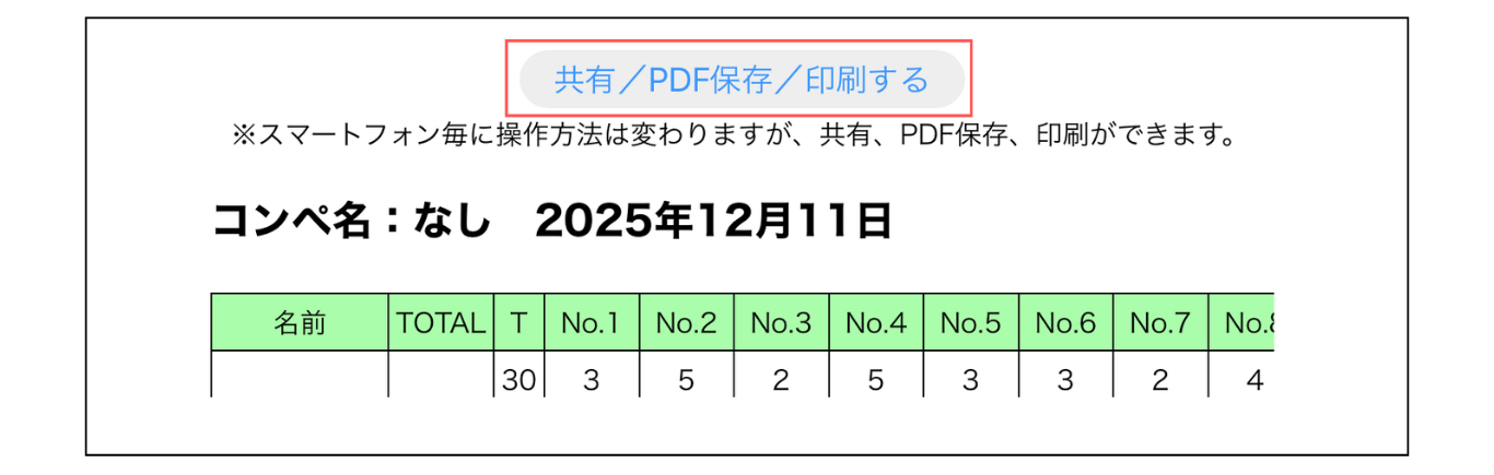4.目的に応じて「共有」「PDF保存」「印刷」を選択してください。